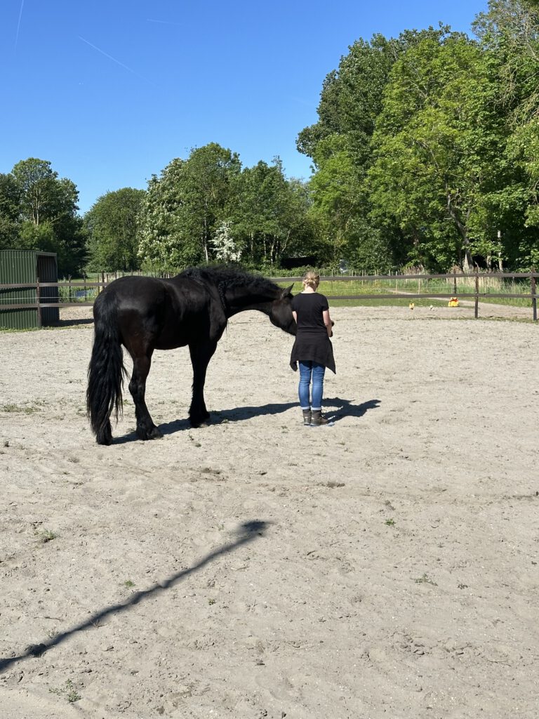 Maar zodra je bij het paard staat, blijft hij nét wat verder van je af. Hij draait zijn hoofd iets weg, ademt wat dieper, hij laat zien dat er iets in jou is wat je nog niet toe durft te laten.