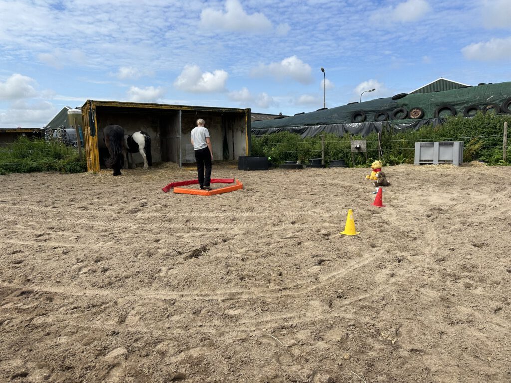 We werken buiten en tussen de paarden. Draag comfortabele kleding die vies mag worden en stevige schoenen. Bij slecht weer is er altijd een droge, beschutte plek beschikbaar.